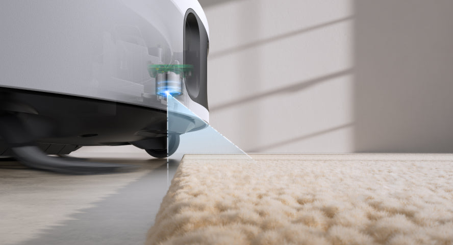 Układ unikania przeszkód 3DAdapt™ robota E30 Ultra wykorzystuje czujniki laserowe do wykrywania obiektów i poruszania się wokół nich, minimalizując kolizje i zapewniając nieprzerwane czyszczenie w celu uzyskania płynnego oraz bezproblemowego cyklu sprzątania.