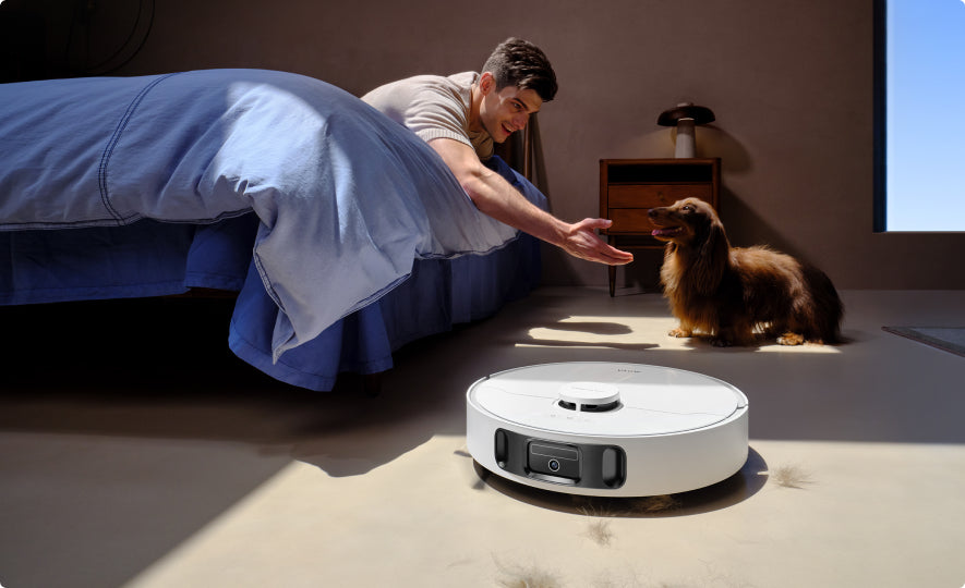 E30 Ultra inteligentnie identyfikuje legowiska, skanuje obszary, w których przebywają zwierzęta, i zwiększa częstotliwość zbierania kurzu podczas odkurzania w celu skutecznego usuwania sierści.