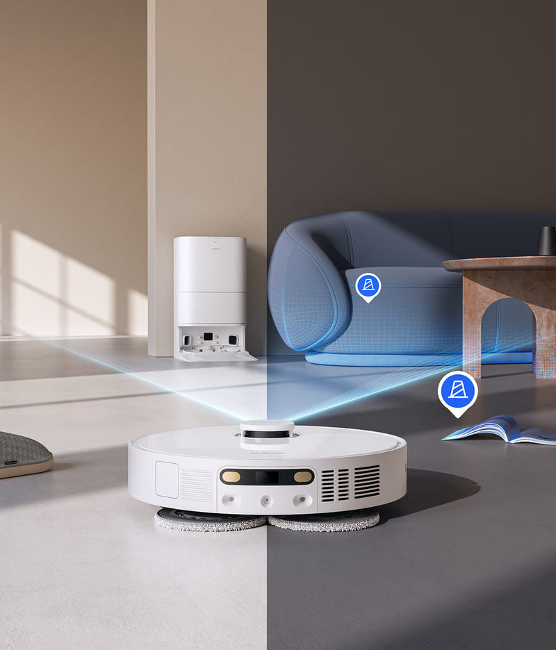 Curățare inteligentă a covoarelor (ridicarea mopurilor la 10,5 mm + recunoaștere cu ultrasunete a covoarelor + amplificarea puterii de aspirare pe covoare)