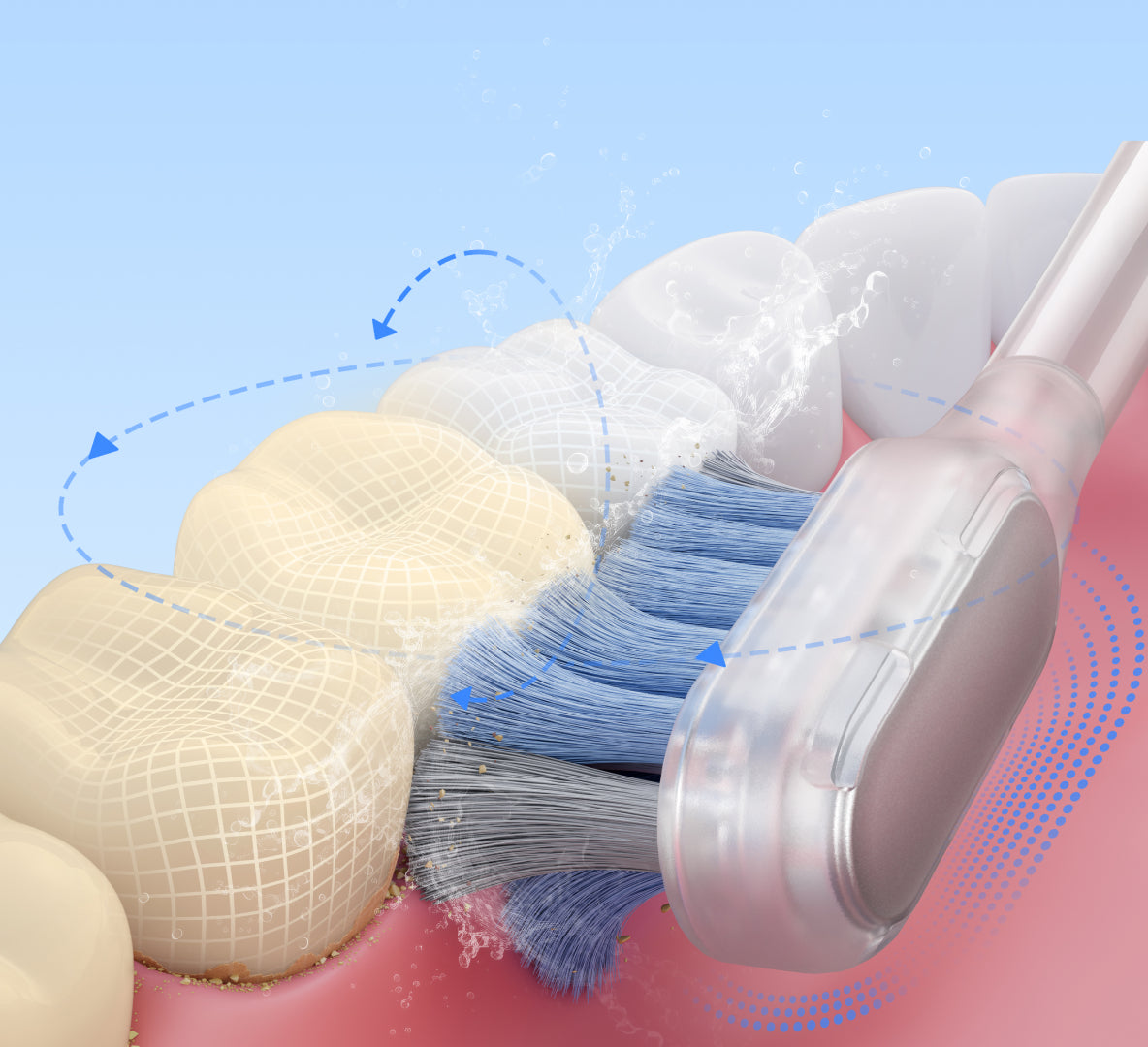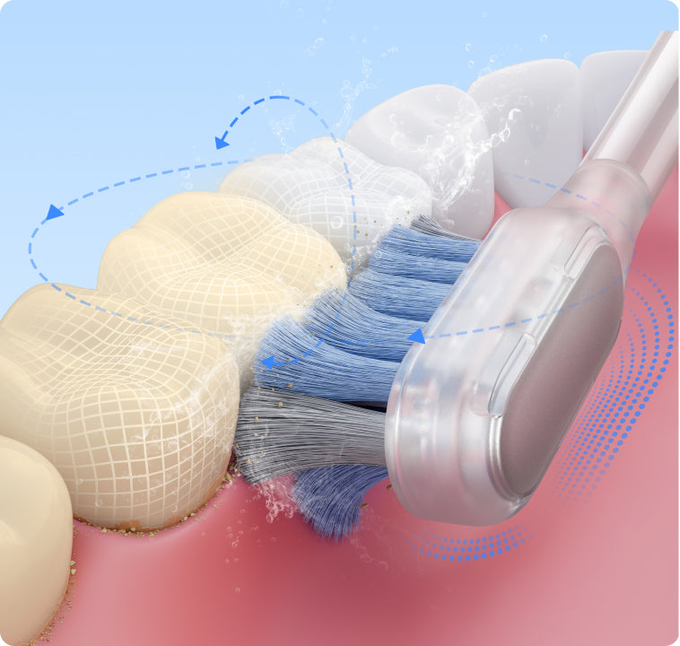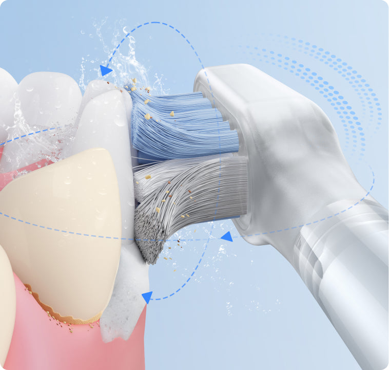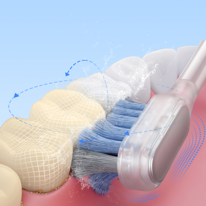 Datorită motorului servo puternic, Fresh Pro reușește să pătrundă cu ușurință până la nivelul dinților, eliminând în mod eficient placa bacteriană și îndepărtând resturile alimentare blocate între dinți*.