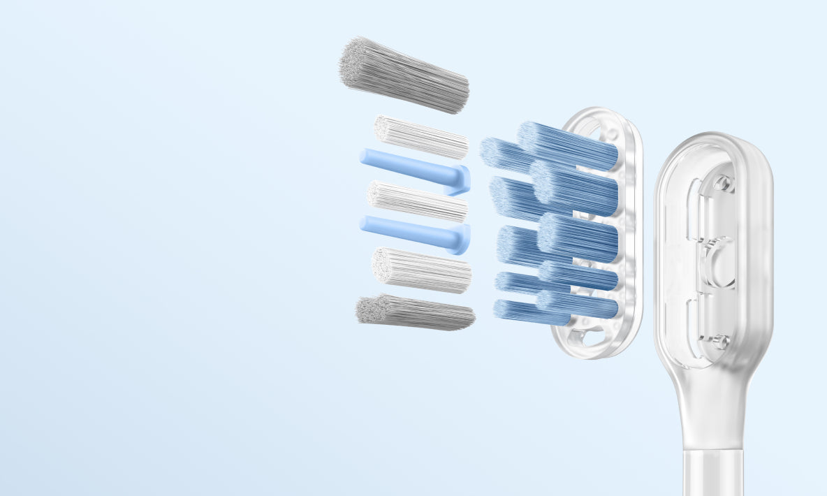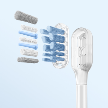 Perii moi, cu 95% din vârfuri rotunjite, pătrund delicat în spațiile interdentare și de-a lungul liniei gingivale, oferind un periaj eficient, dar blând, pentru dinți și gingii.