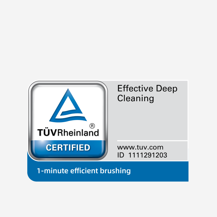 *Un minut: Certificat de organizații de renume precum TÜV Rheinland pentru metoda de periaj de un minut. Datele provin dintr-un laborator terț. Performanța reală poate varia în funcție de utilizare.