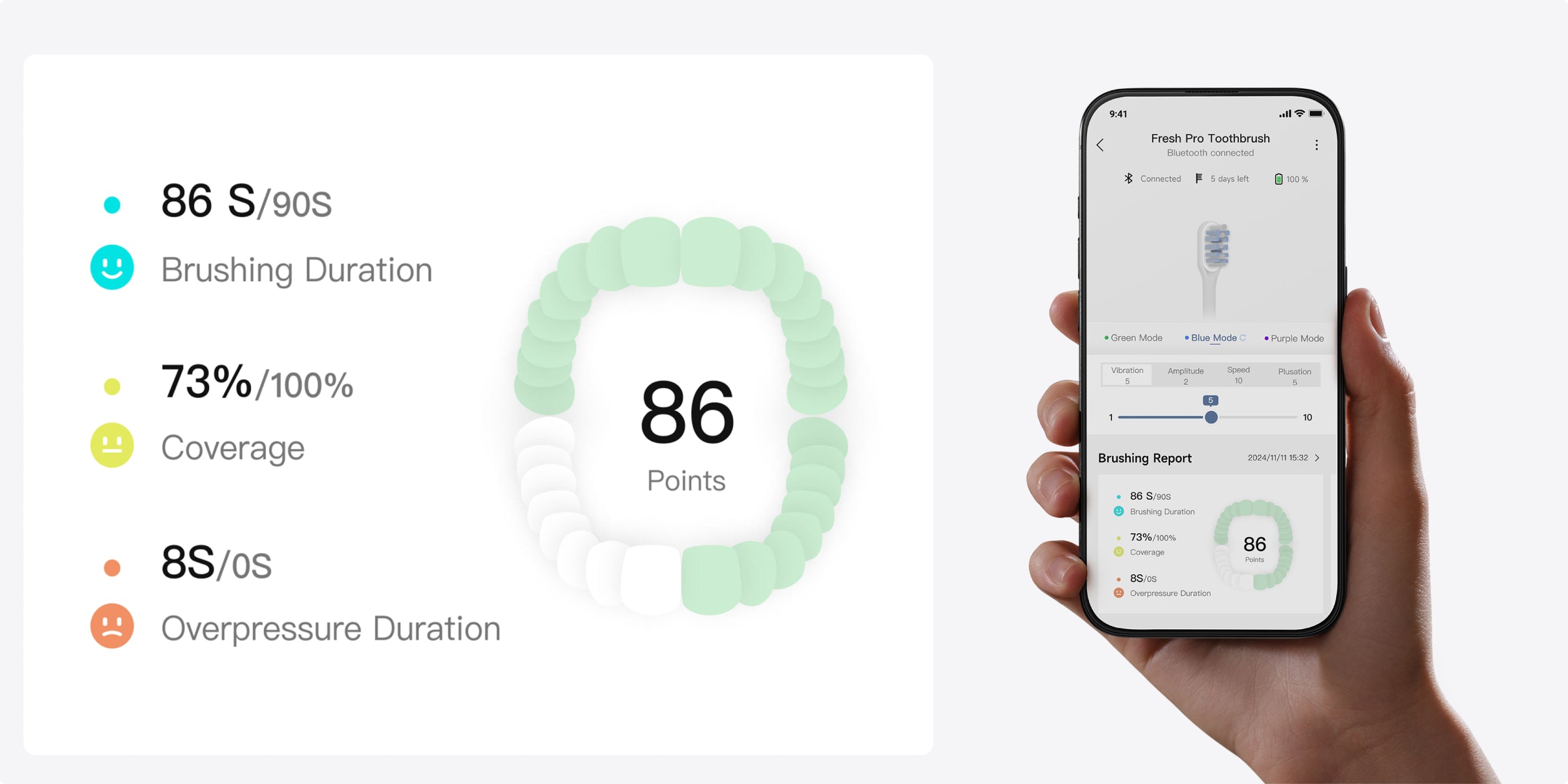 *30 de zile: Pe baza a două minute de periaj zilnic (Fresh Pro: un minut dimineața și un minut seara; Fresh: două minute dimineața și două seara) în modul Standard. Conform datelor interne de laborator. Performanța reală poate varia în funcție de utilizare.