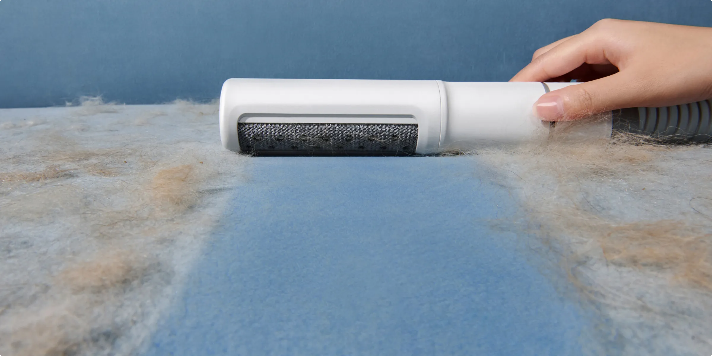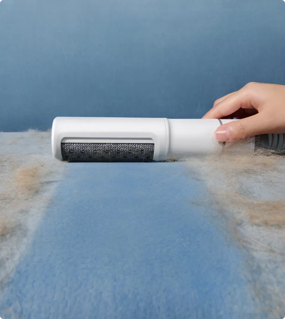 elimină cu ușurință părul de pe țesături folosind principii electrostatice.