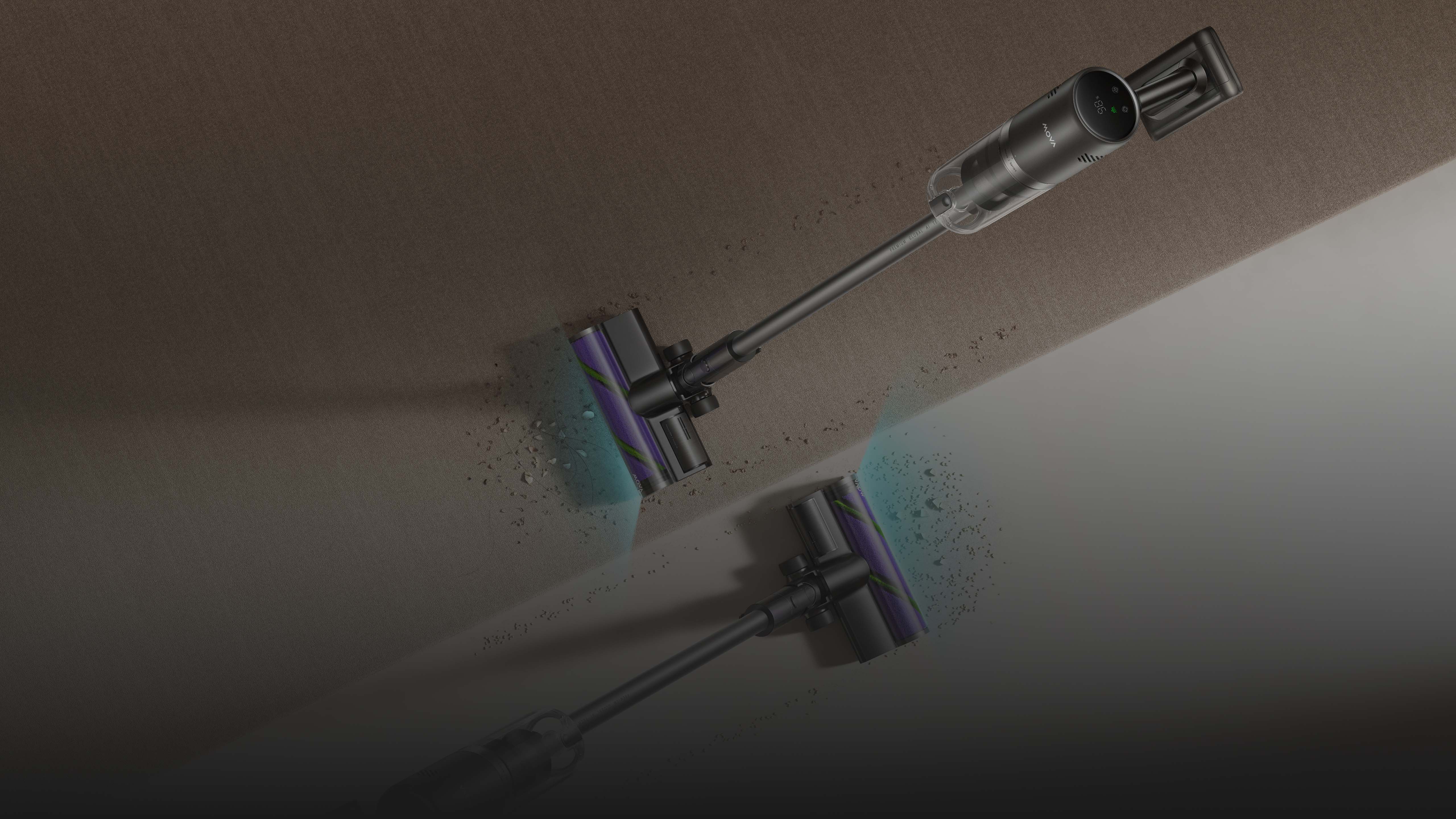 Tehnologia OptiInsight proiectează o lumină amplă la doar 4 mm* deasupra solului, extinzând umbrele prafului pentru a dezvălui fiecare particulă ascunsă. Părul de animale, praful fin, nimic nu scapă acestei iluminări extrem de precise în colțurile întunecate.