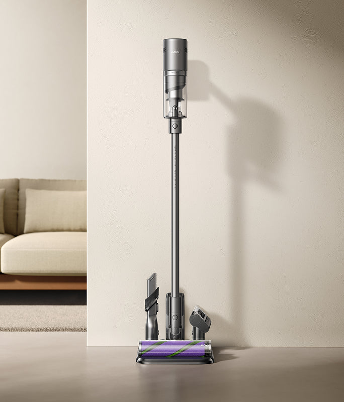 Suportul vertical oferă comoditate de tip „ia și pleacă” fără a fi necesară găurirea peretelui. Acesta este folosit ca suport de depozitare pentru a păstra toate accesoriile organizate și ca stație de încărcare care vă menține întotdeauna aspiratorul alimentat, cu protecție încorporată împotriva supraîncărcării pentru o încărcare sigură și eficientă din punct de vedere energetic.