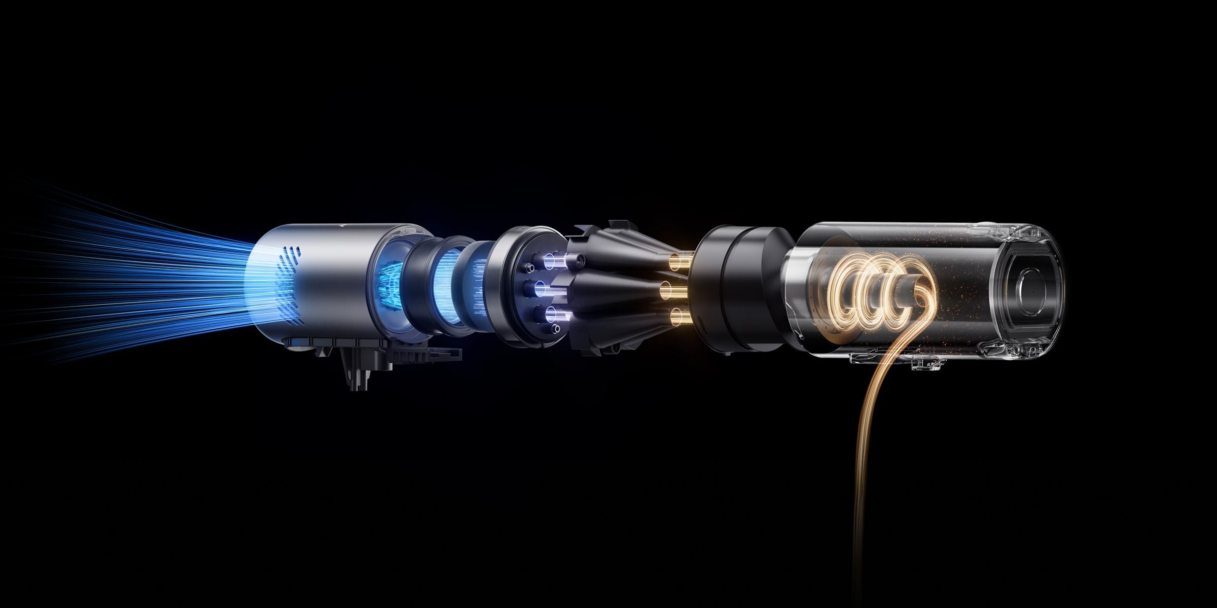 Sistemul ciclonic inovator cu mai multe conuri este prevăzut cu mai multe separatoare în formă de con care măresc viteza fluxului de aer și sporesc forța centrifugală, reținând în mod eficient praful în timp ce aerul curat circulă liber, totul într-un sistem compact, rezistent la înfundare, care menține performanța la un nivel înalt.