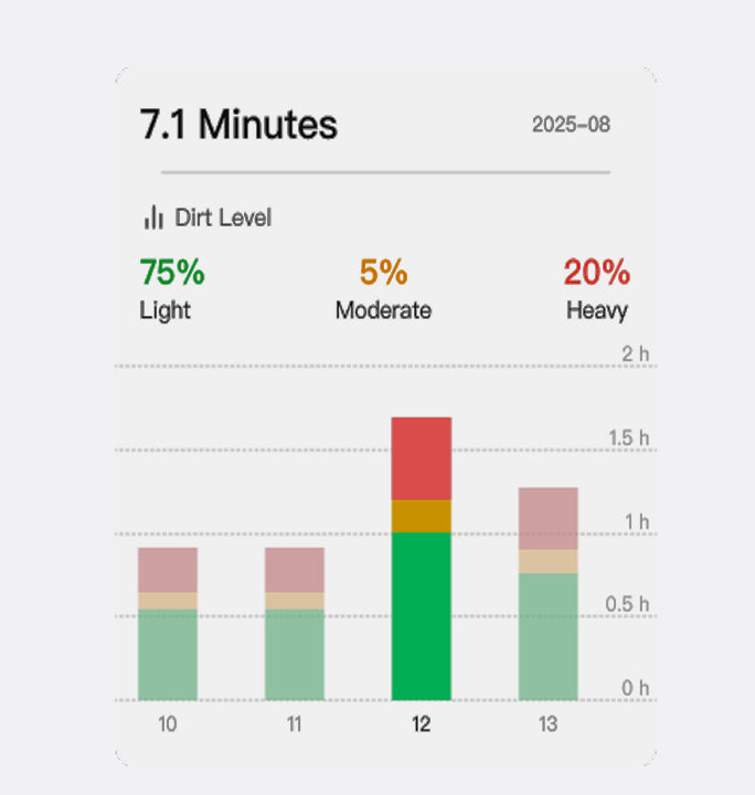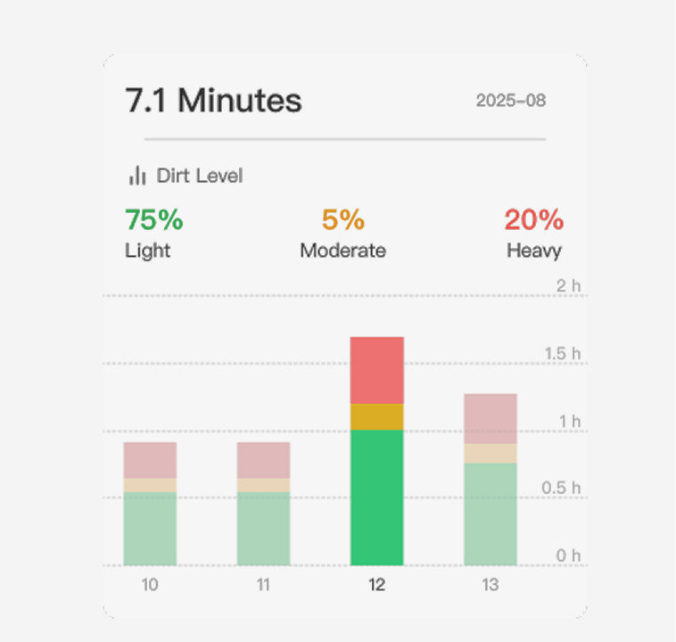 Înregistrează durata, modul și utilizarea asociate fiecărei sesiuni de curățare pentru vizualizare și analiză ușoară.