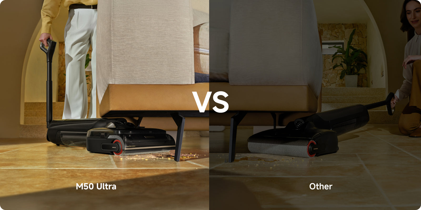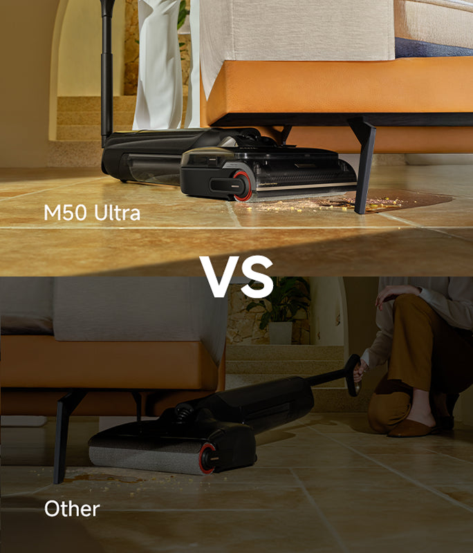 M50 Ultra are o putere de aspirare impresionantă de 22.000 Pa, gestionând fără efort mai multe tipuri murdărie – indiferent că este umedă sau uscată, la suprafață sau în profunzime. În plus, aplică o presiune descendentă de aproximativ 20 N pentru a curăța podelele, îndepărtând în mod eficient chiar și cele mai persistente pete.