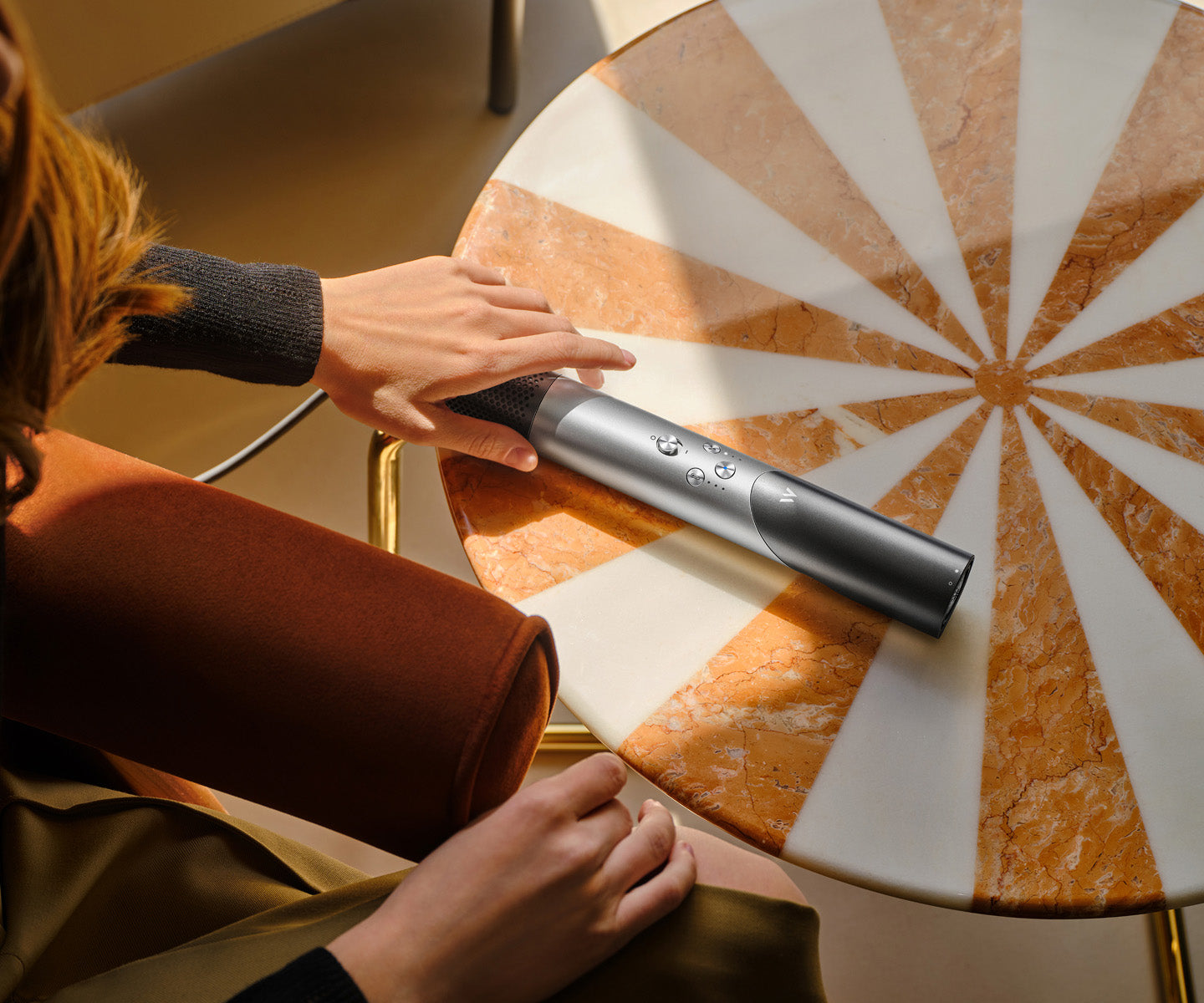 Simplificați-vă rutina cu o duză de coafare care vă cunoaște. Duza inteligentă se setează automat la modul ideal în funcție de utilizările frecvente. Memoria modurilor reține temperatura și fluxul de aer ale dvs. pentru fiecare duză de coafare, reglându-se după preferințele dvs. data viitoare - nu este necesară reglarea fină suplimentară.