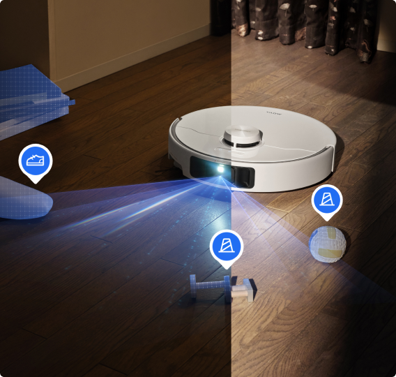 Beneficiază de o navigare ușoară în fiecare cameră cu P50 Pro Ultra. Aceste aspiratoare robot trec peste praguri cu o înălțime de până la 22 mm (0,86 in.), abordând eficient peste pragurile din baie și evitând obstacolele de zi cu zi, cum ar fi haine, pantofi și altele.