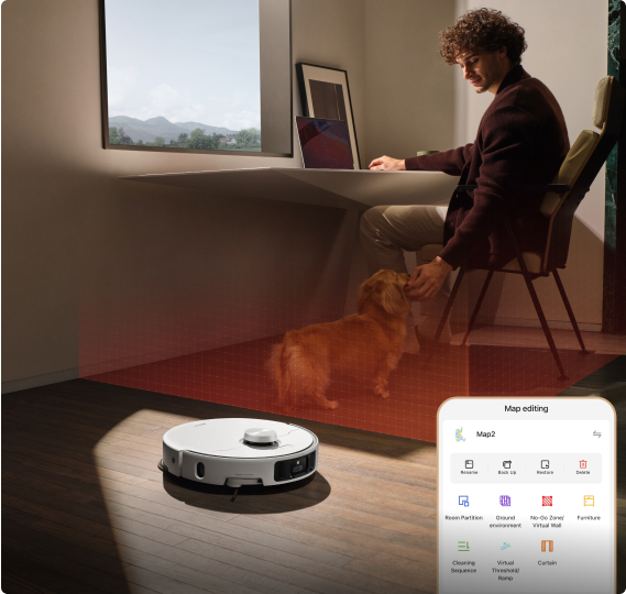 Personalizează setările aplicației de curățare pentru a se potrivi cel mai bine casei tale. Setează zone interzise, zone de curățare cu perdele sau amplasarea mobilierului pentru un control perfect și un spațiu complet ordonat.
