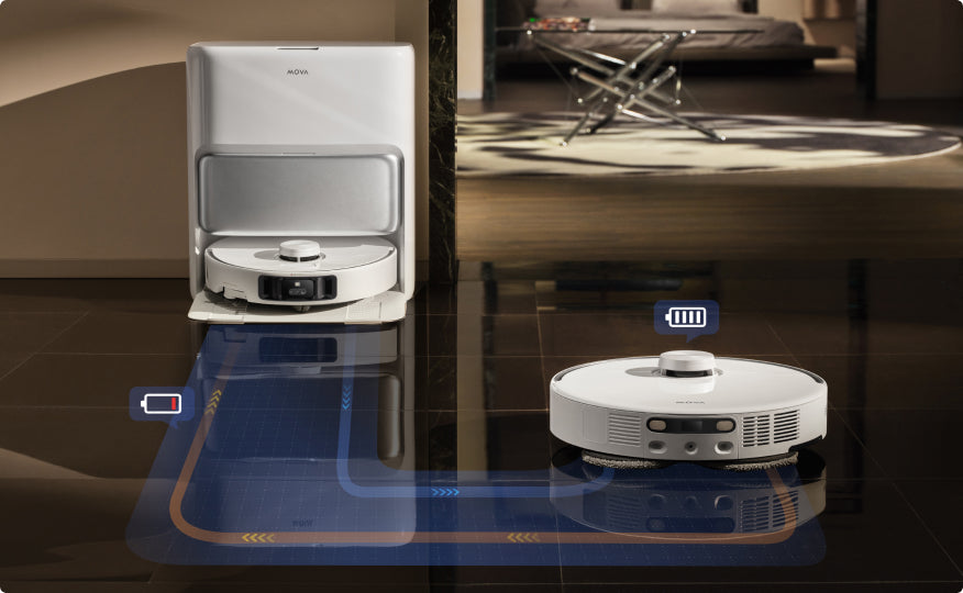 Descoperă o experiență de curățare continuă cu P50 Pro Ultra. Bateria sa de 5.200 mAh face față cu succes suprafețelor mari de acasă, fie că aspiri covoare sau ștergi pete dificile. Aspiratorul robot se întoarce la stație pentru a se reîncărca și a relua curățarea, în timp ce încărcarea în afara orelor de vârf* oferă economii la facturile la energie.