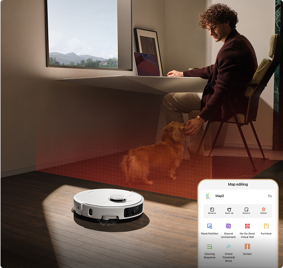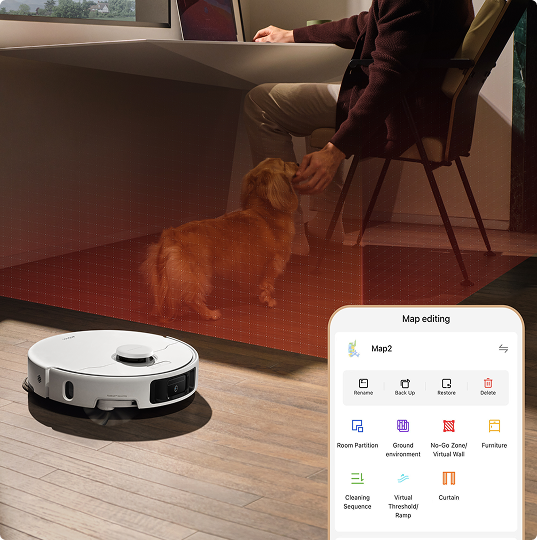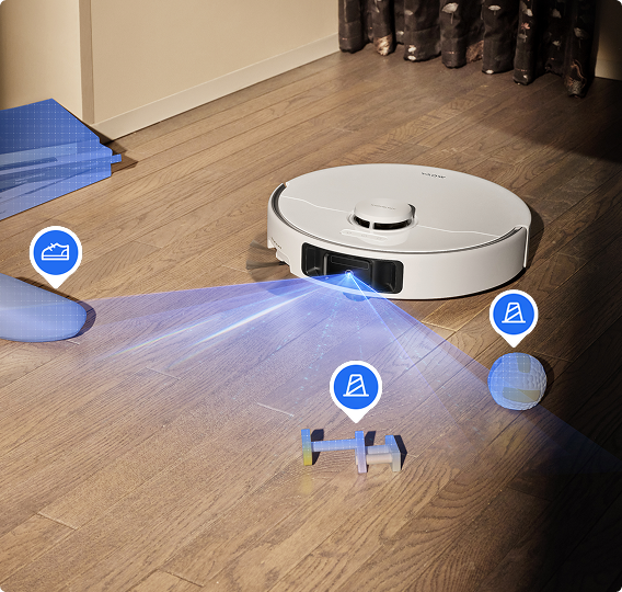P50 Ultra generează hărți 3D pe 4 niveluri și planifică trasee, deplasându-se ușor pe diverse suprafețe din casă. Cu ajutorul luminii structurate 3D și senzorilor, aspiratorul robot detectează și evită obstacole multiple, precum pantofi, jucării sau picioarele scaunelor.