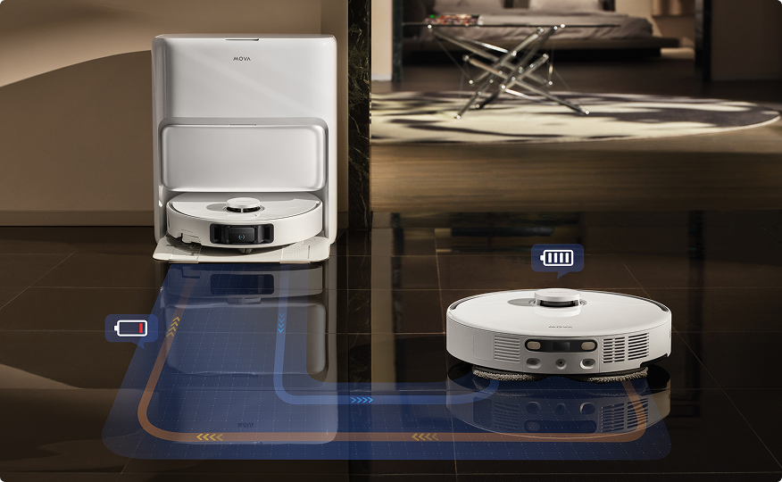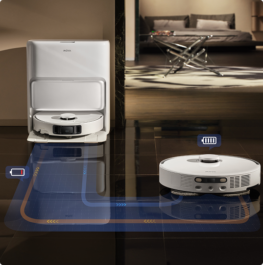 Descoperă o experiență de curățare continuă cu P50 Ultra. Bateria sa de 5.200 mAh face față cu succes suprafețelor mari de acasă, fie că aspiri covoare sau ștergi pete dificile. Aspiratorul robot se întoarce la stație pentru a se reîncărca și a relua curățarea, în timp ce încărcarea în afara orelor de vârf* oferă economii la facturile la energie.