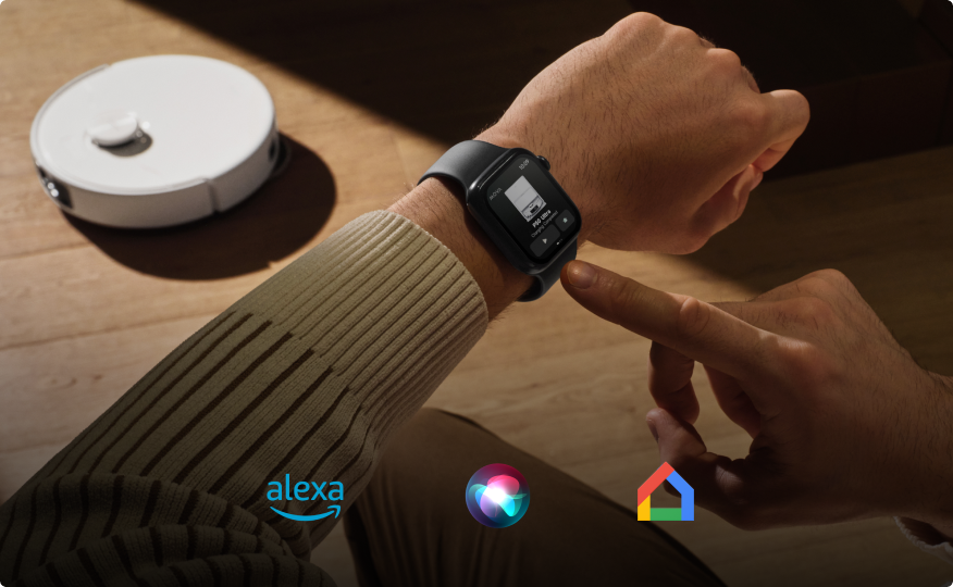 Accesează și programează reprize de curățare și urmărește progresul cu un singur cuvânt de pe Apple Watch* și alte dispozitive.