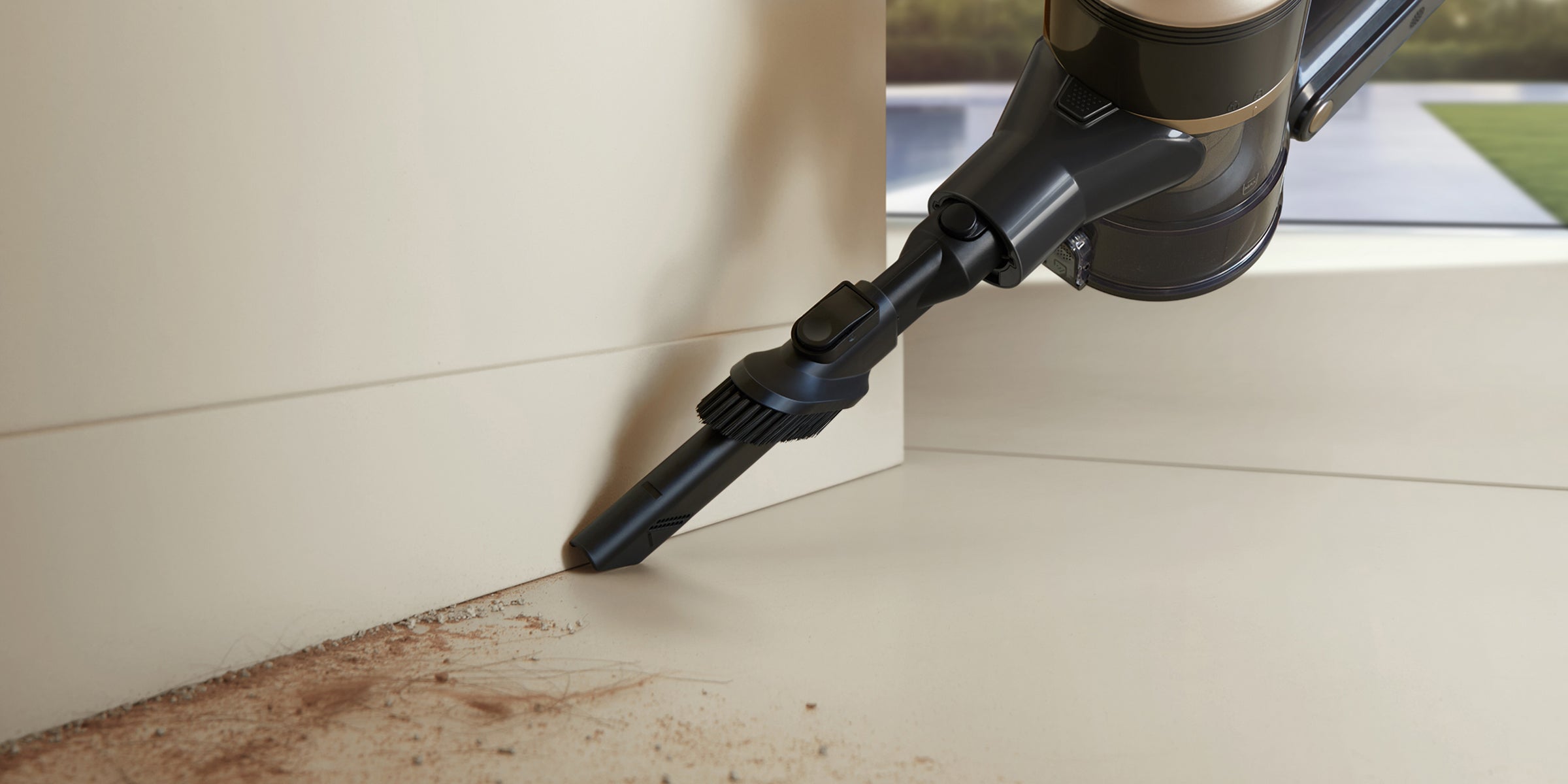 Extinde-ți capacitățile de curățare cu duze dedicate: accesoriul lung 2 în 1 pentru spații înguste ajunge în colțurile strâmte și înguste, în timp ce mini-peria motorizată se ocupă de paturi și canapele pentru o curățare rapidă și eficientă.