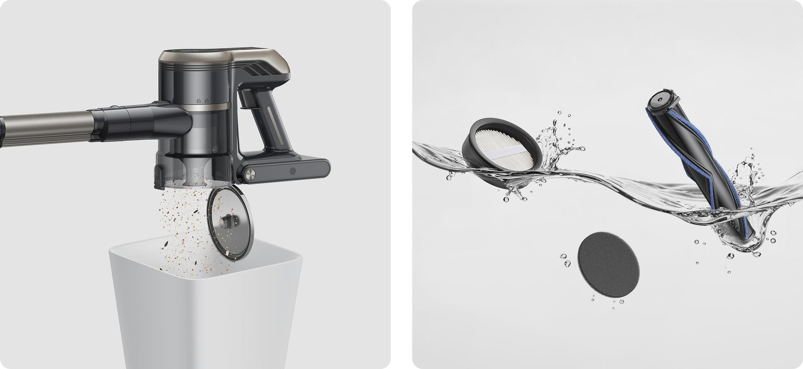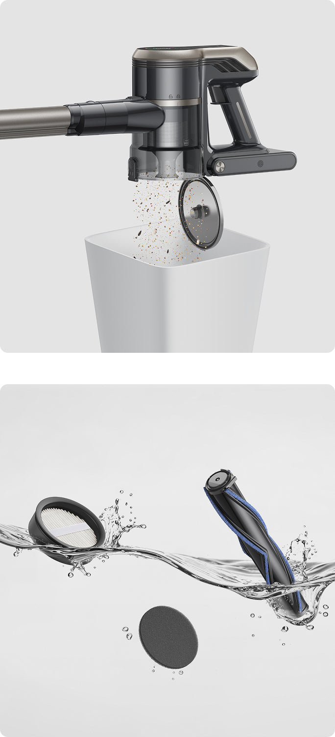 Stay in control with the sleek LED screen that provides real-time updates on battery, cleaning mode, and maintenance status.