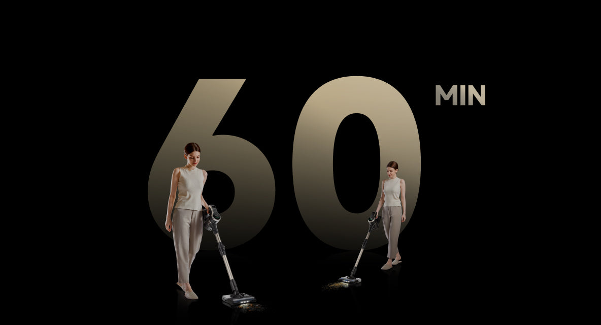Durată de funcționare de peste 60 min.* cu peria cu rolă
