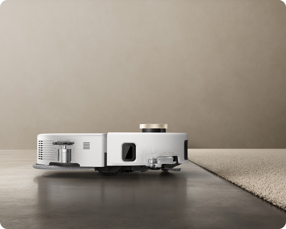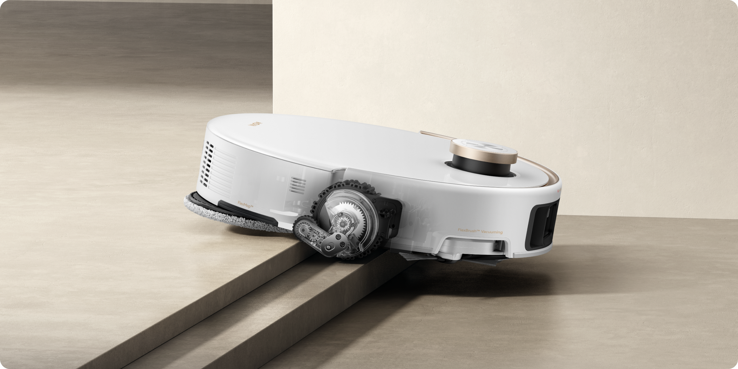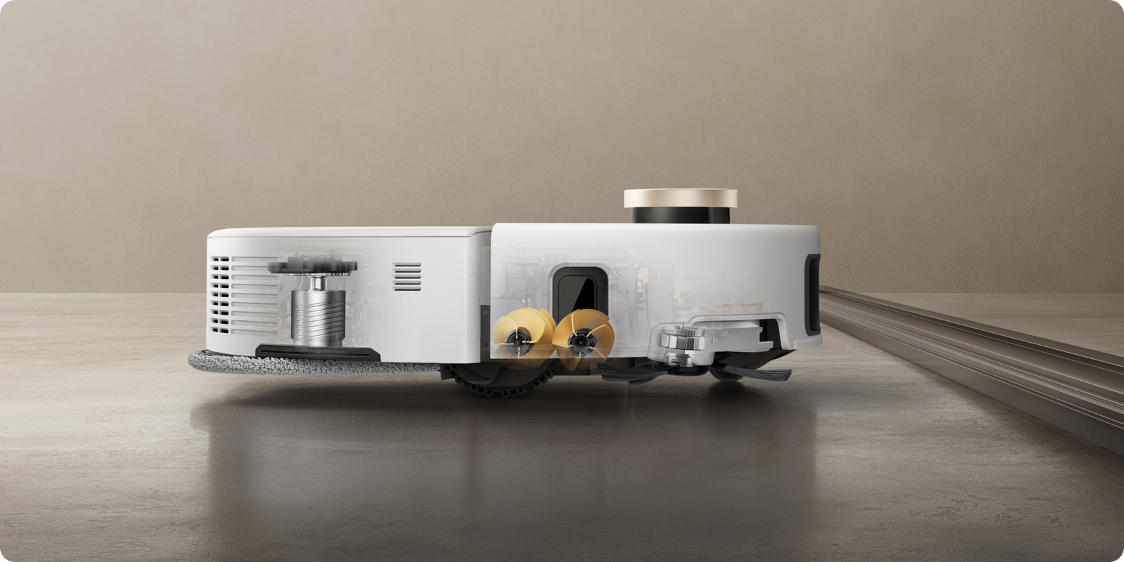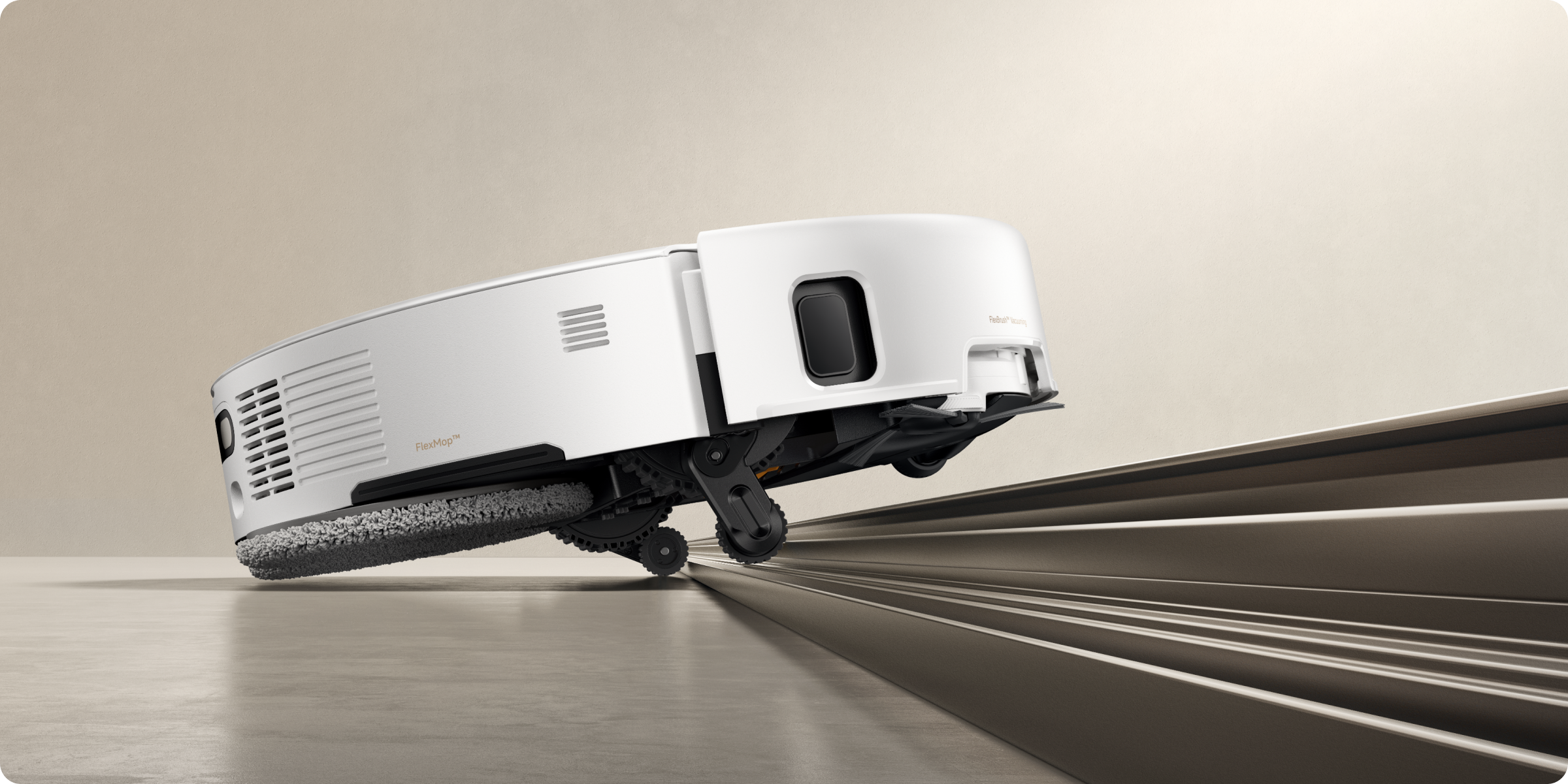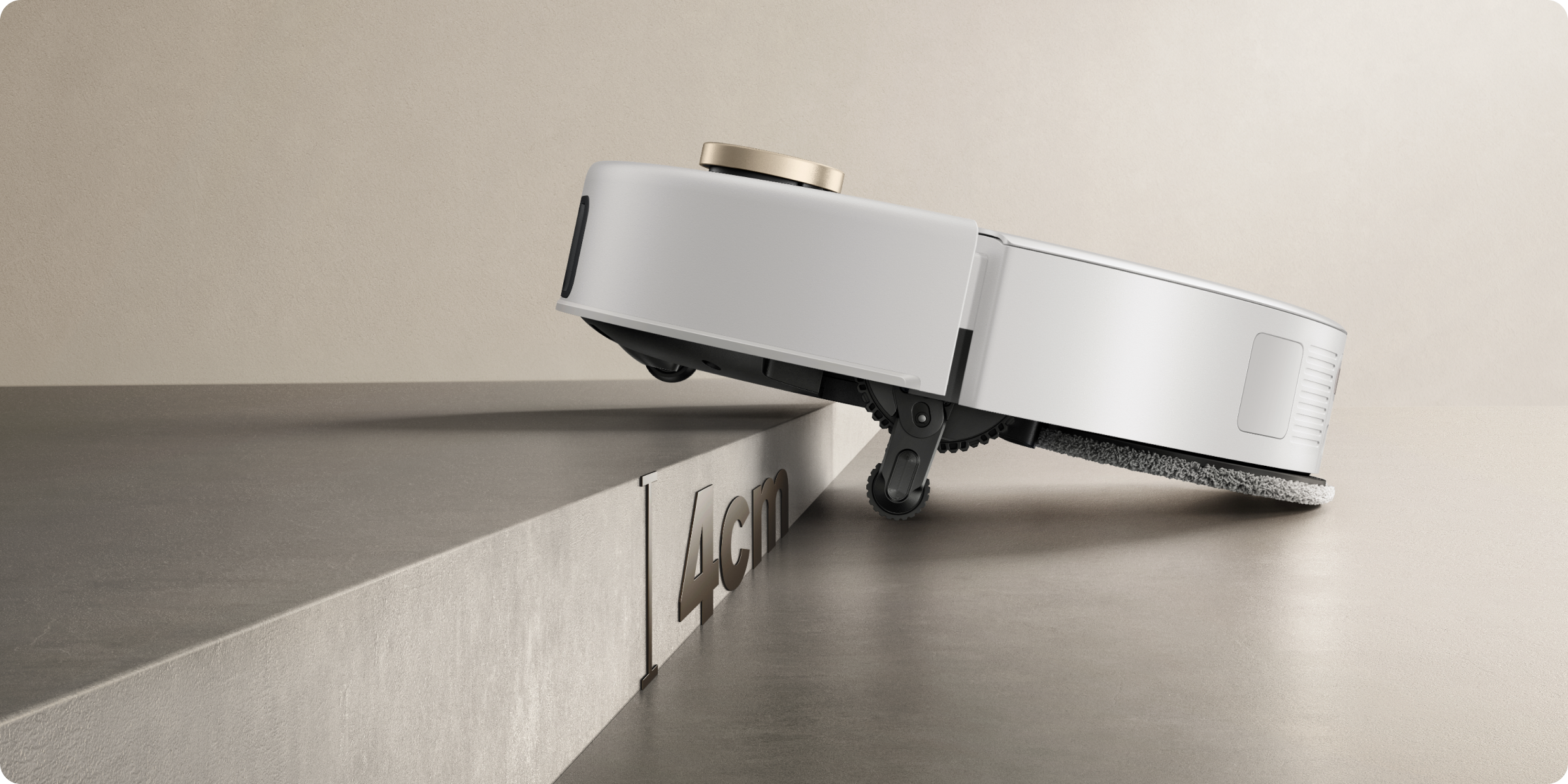 Sistemul StepMaster™ dispune de picioare robotizate retractabile care pot ridica șasiul, permițându-i să treacă ușor peste trepte, praguri, șine de uși, picioare de mobilier în formă de U și obstacole mici de până la 6cm* înălțime. Navighează cu ușurință în medii complexe de acasă pentru o curățare temeinică și întoarcere fără efort.