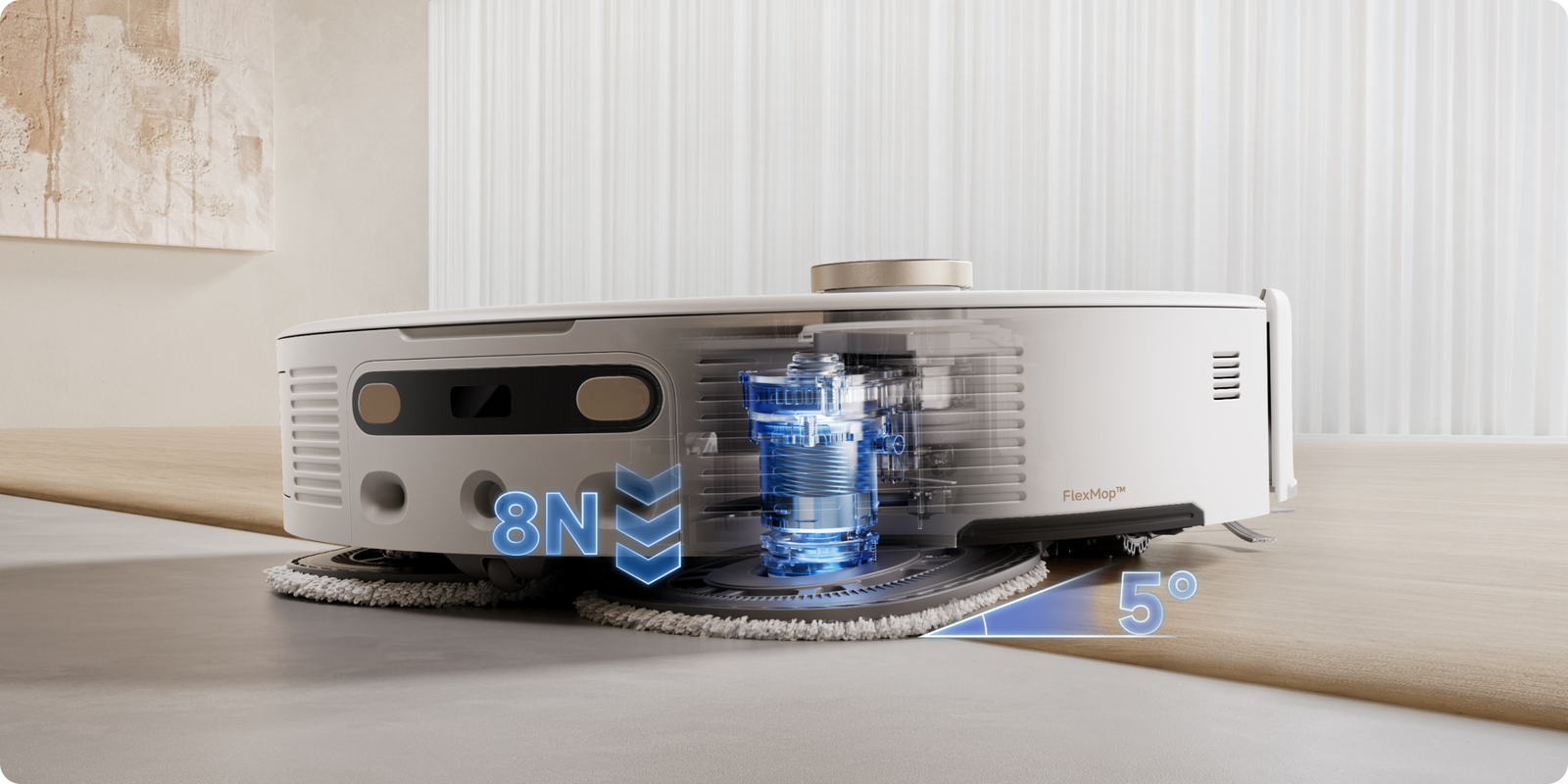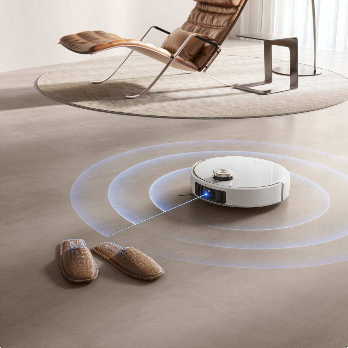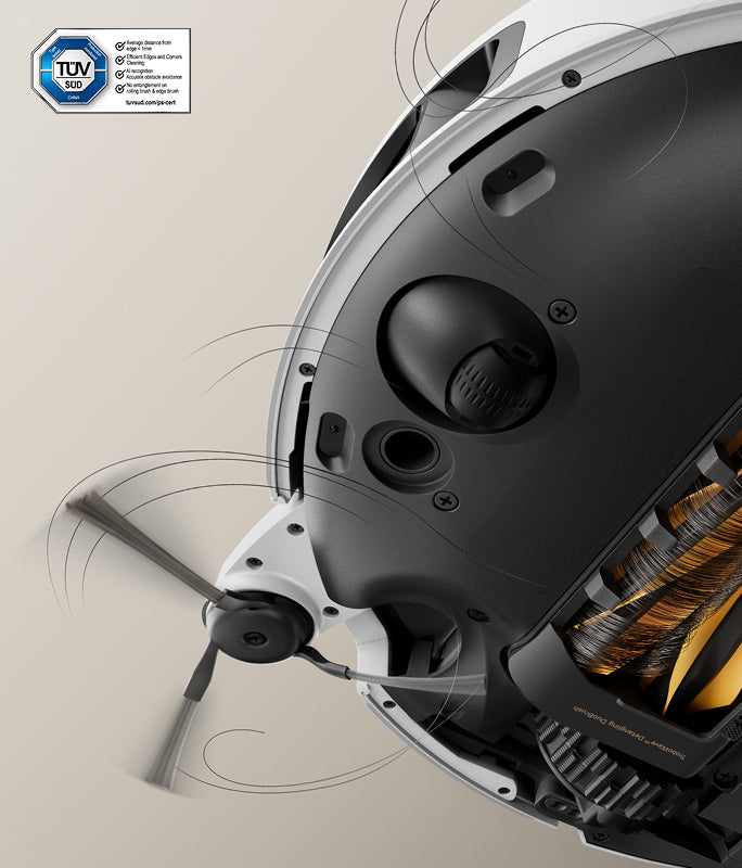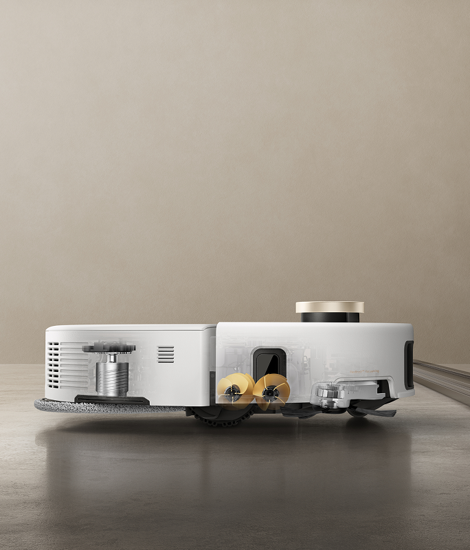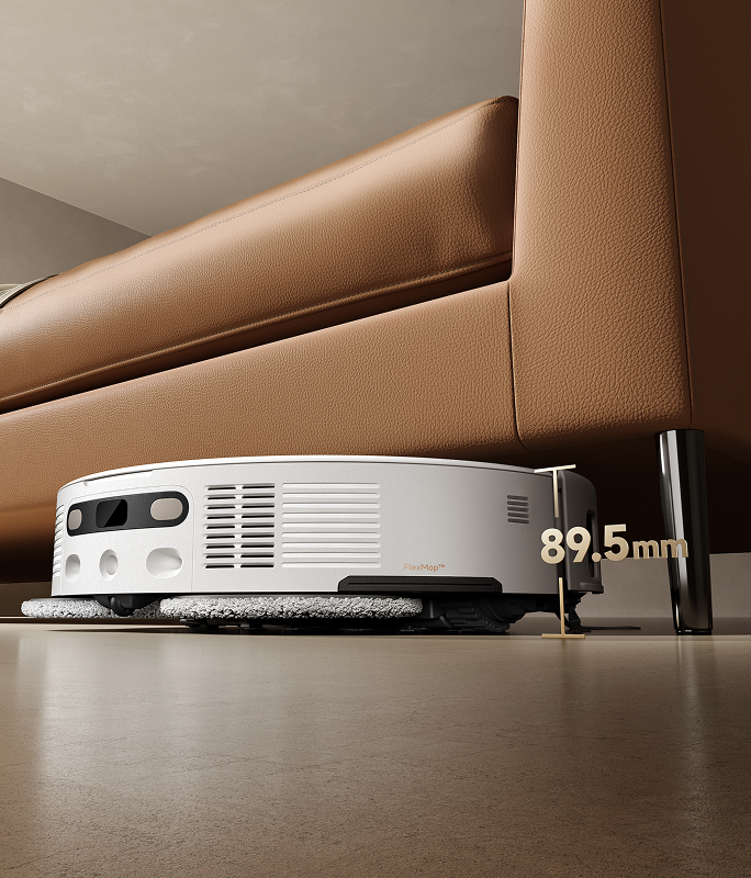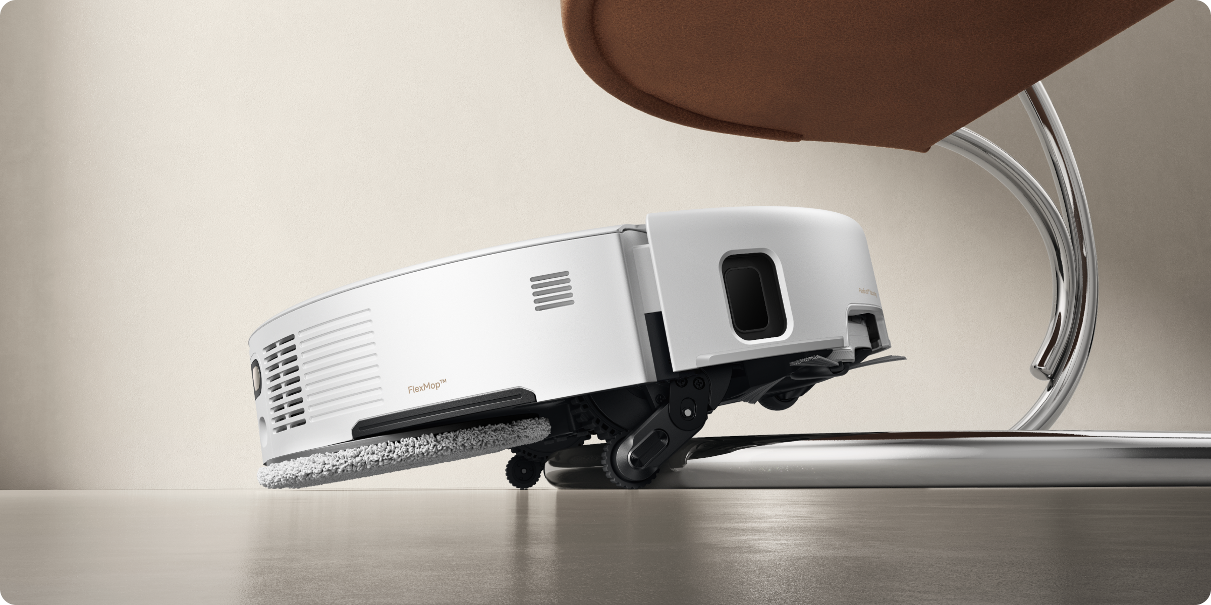 Sistemul StepMaster™ dispune de picioare robotizate retractabile care pot ridica șasiul, permițându-i să treacă ușor peste trepte, praguri, șine de uși, picioare de mobilier în formă de U și obstacole mici de până la 6cm* înălțime. Navighează cu ușurință în medii complexe de acasă pentru o curățare temeinică și întoarcere fără efort.