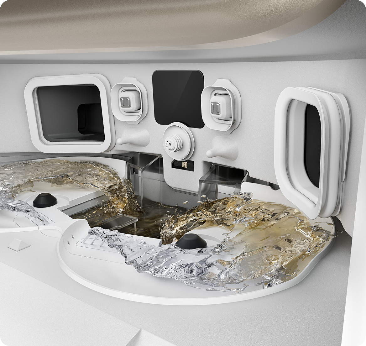 Proiectat inovator cu două recipiente pentru soluții de curățare: unul pentru soluția de curățare generală și celălalt pentru eliminatorul de mirosuri de pisică pe bază de N-Soya Morpholine care deodorează mirosurile de pisică la sursă, nu doar le acoperă. Alegeți modul de curățare și soluția preferată prin aplicația de curățare.