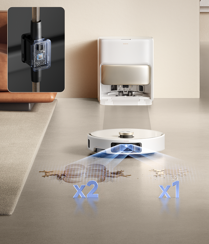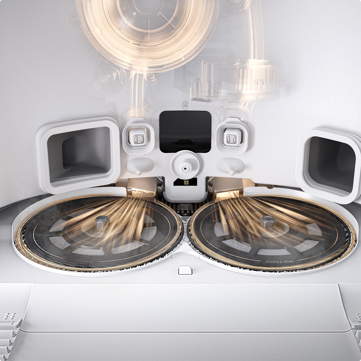 *260RPM: Bazat pe teste în laboratorul nostru intern. Performanța reală poate varia în funcție de utilizare. Viteza default a mopului este de 180RPM. Când se detectează murdărie solidă sau lichidă, crește automat la viteza maximă de 260RPM pentru o curățare îmbunătățită.