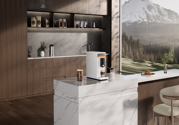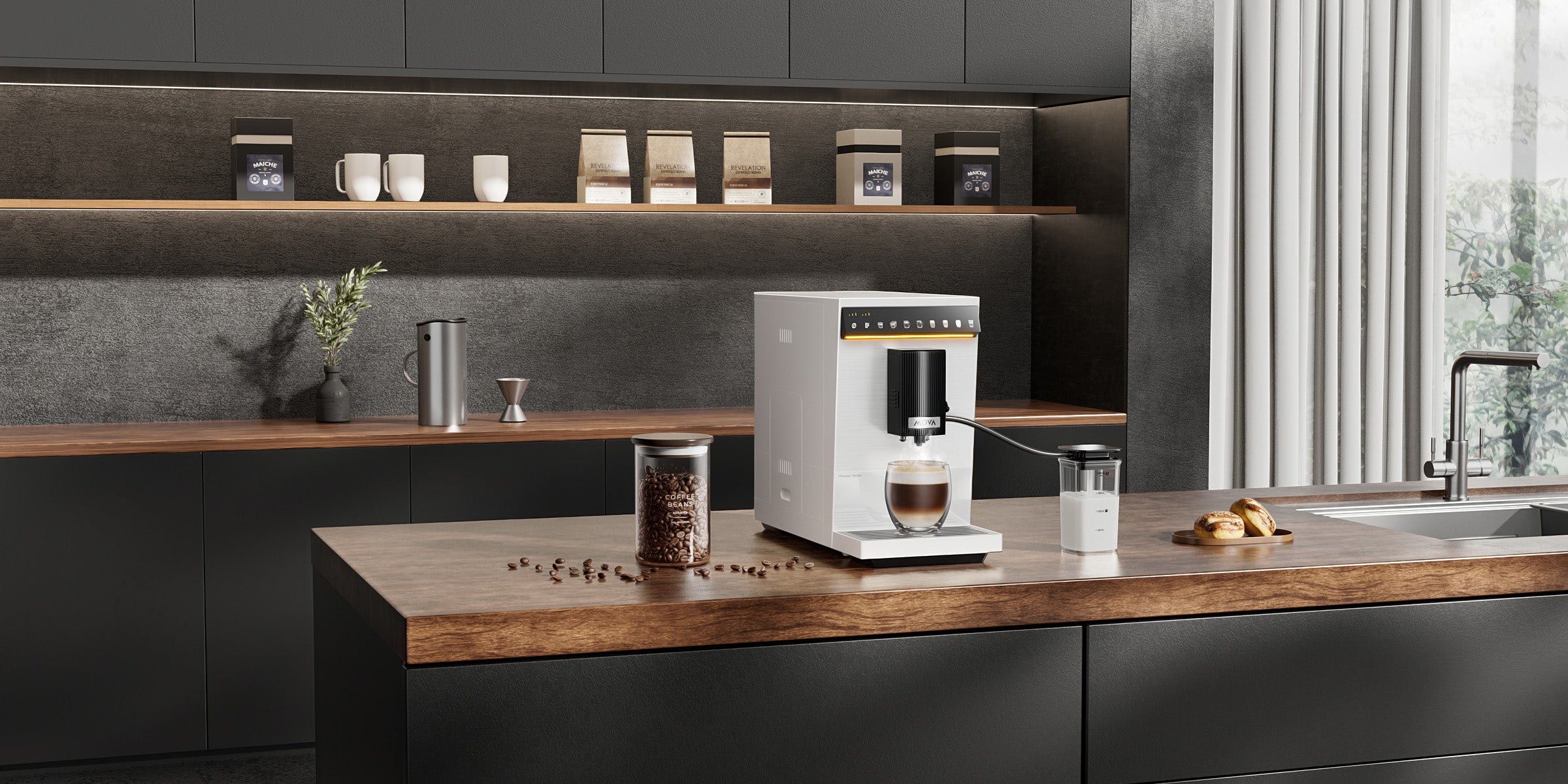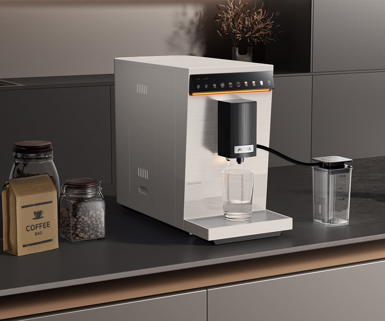 Virtuoso 10 Pro completează perfect orice stil interior cu liniile sale elegante, finisajul metalic periat și luminile moderne delicate de pe afișaj. Transformă-ți spațiul într-un colț dedicat cafelei, elegant și funcțional.