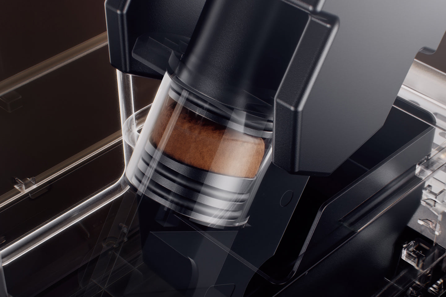 Spre deosebire de extracția tradițională, tehnologia revoluționară de extracție în linie a espressorului Virtuoso 10 Pro folosește presarea de sus în jos, asemănătoare metodelor artizanale de preparare manuală, formând un puc de cafea compact. Astfel, extracția devine mai uniformă, cu o aromă mai bogată și cu spumă vizibil mai densă.