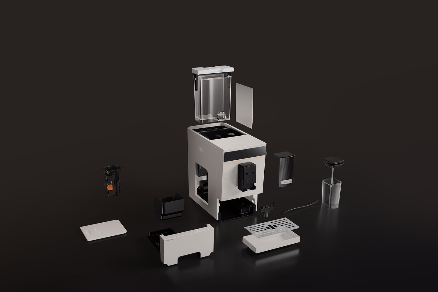 Corpul aparatului este înclinat înainte cu 4,6°* pentru a crea un unghi mai confortabil pentru plasarea ceștilor. Afișajul LED este, de asemenea, înclinat ergonomic la o înălțime care permite controlul tactil fără efort, fie că stai în picioare sau așezat, oferindu-ți o experiență de preparare a cafelei de nivel superior.