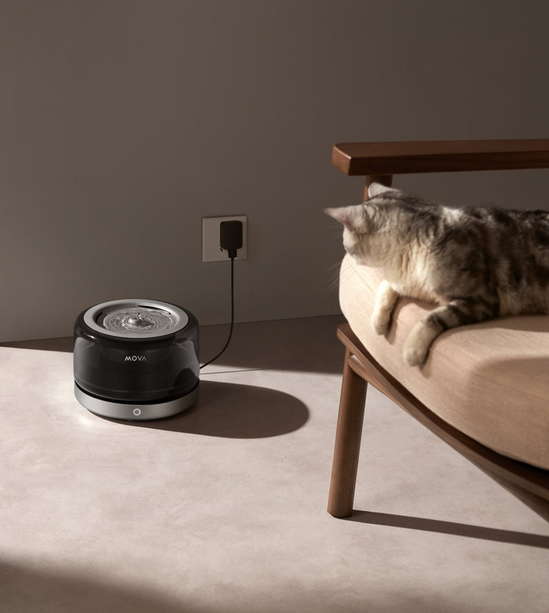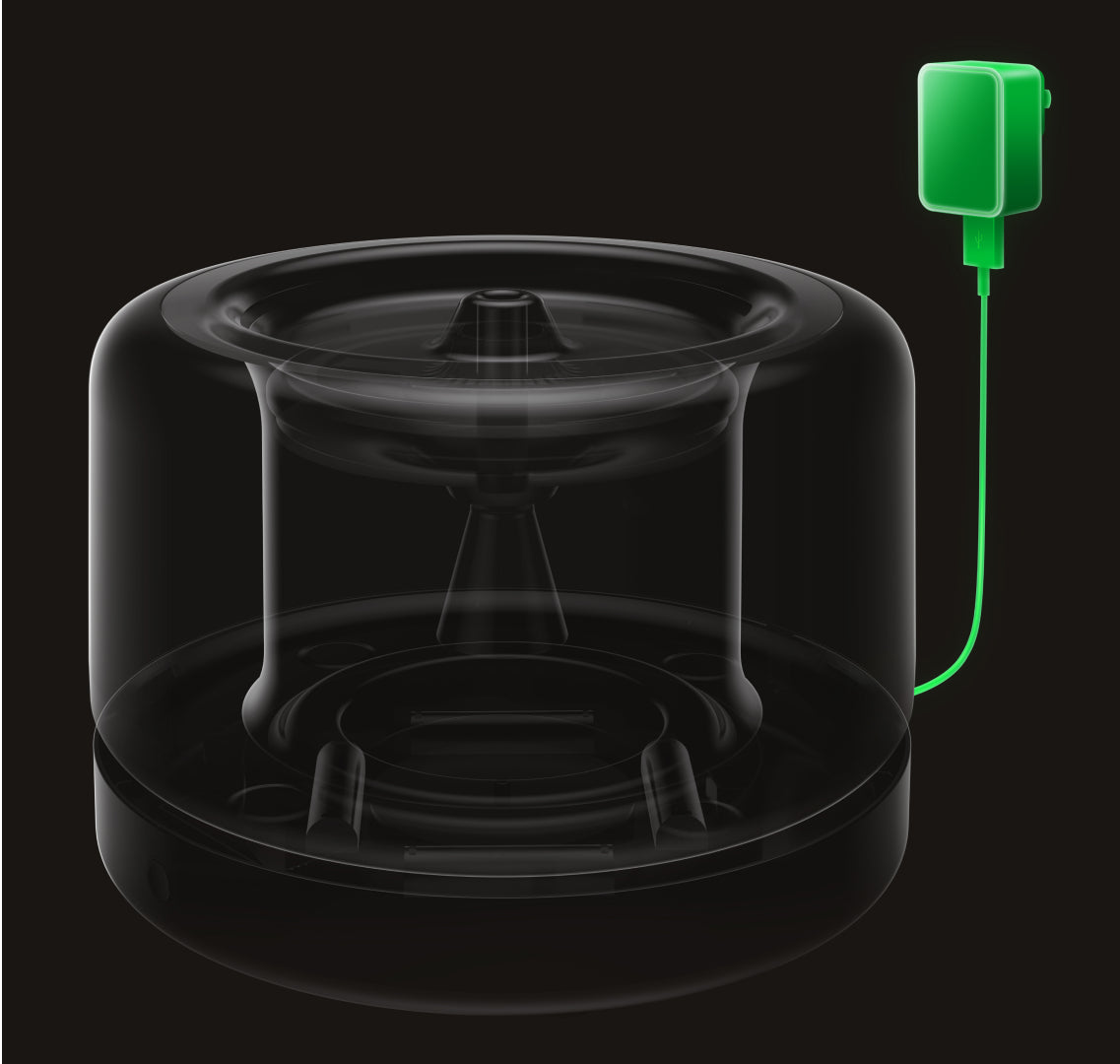 *Fântâna de apă se alimentează prin conexiune la priză. Doar pompa este proiectată cu funcționalitate fără fir.