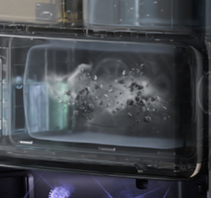 Te bucuri de confortul stației de bază multifuncționale, proiectate pentru a simplifica rutina de curățare și pentru a umple, goli, spăla și încărca automat, facilitând întreținerea fără intervenție manuală.