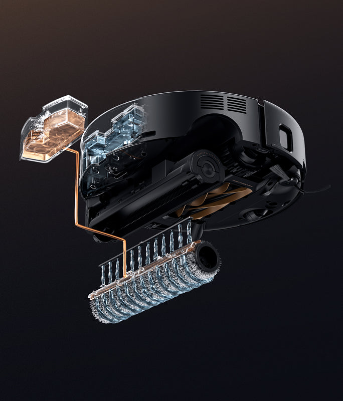 * Peste 36 %: Z60 Ultra Roller Complete asigură o îmbunătățire cu 36 % a capacității de absorbție a murdăriei față de alte modele de roboți MOVA cu două discuri, pe baza testelor din laboratorul nostru intern. Rezultatele efective pot varia în funcție de factorii de mediu.