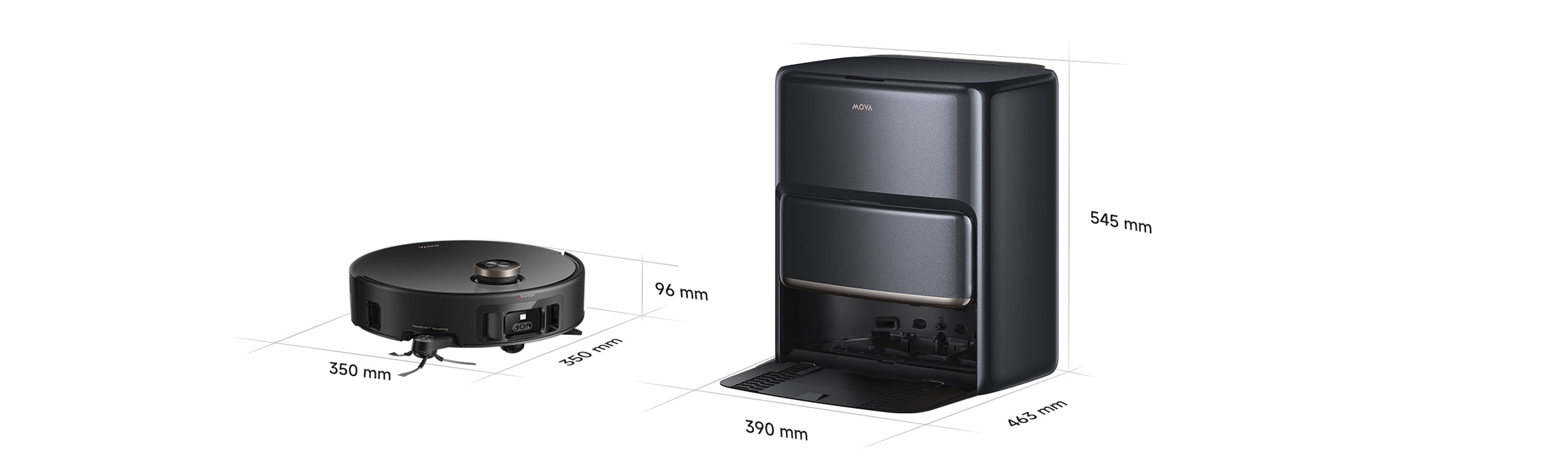 Dimensiunile aspiratorului robot 350 x 350 x 96 mm (senzor DToF retras)